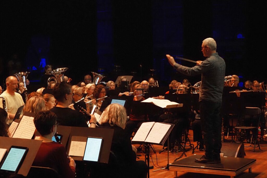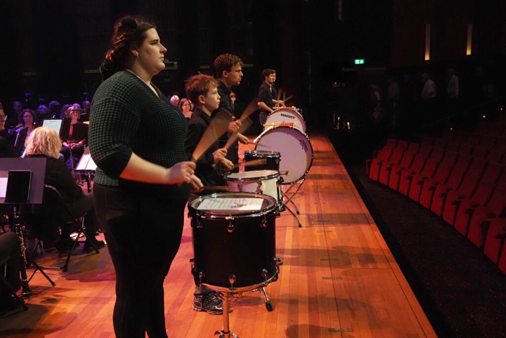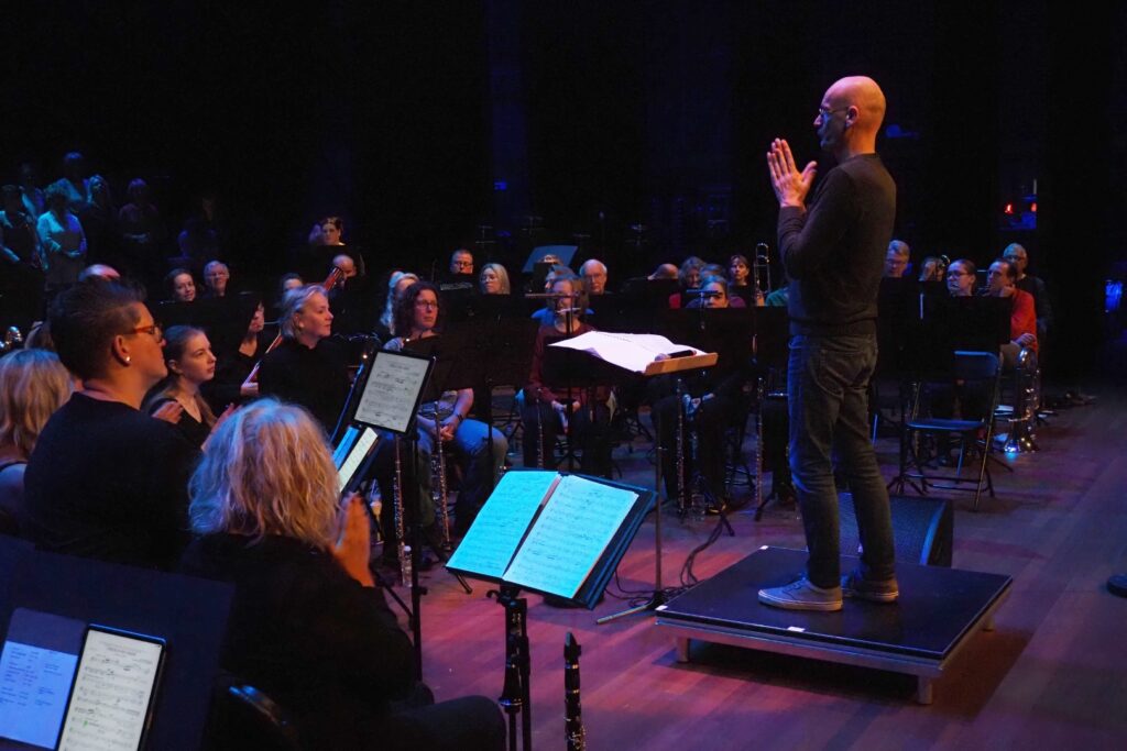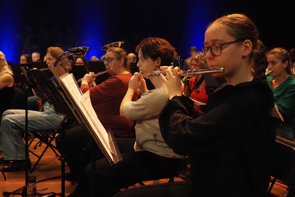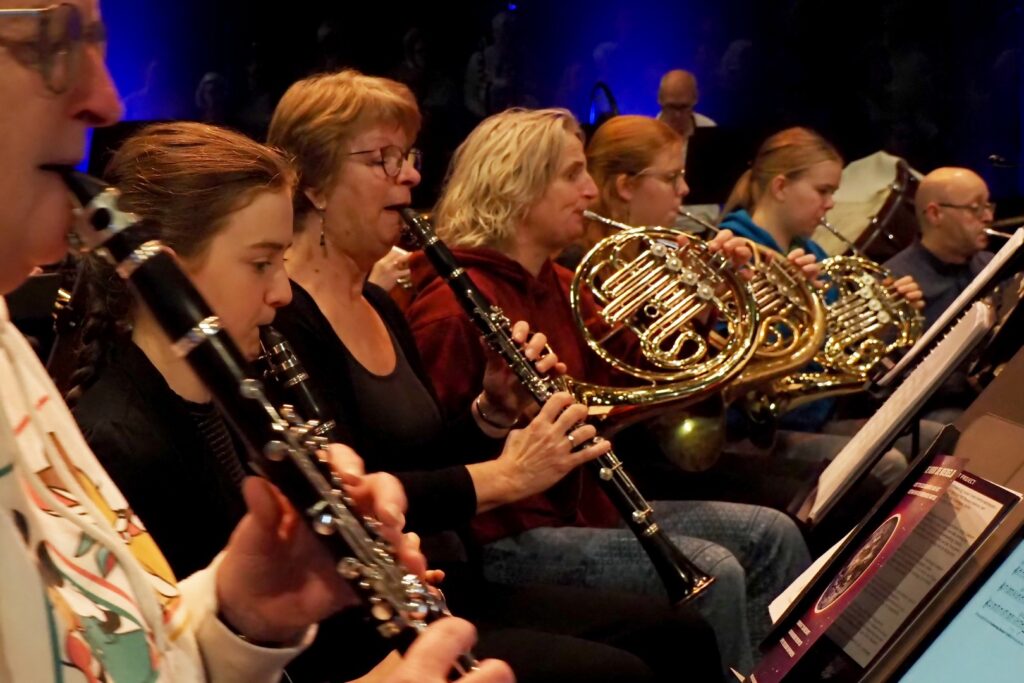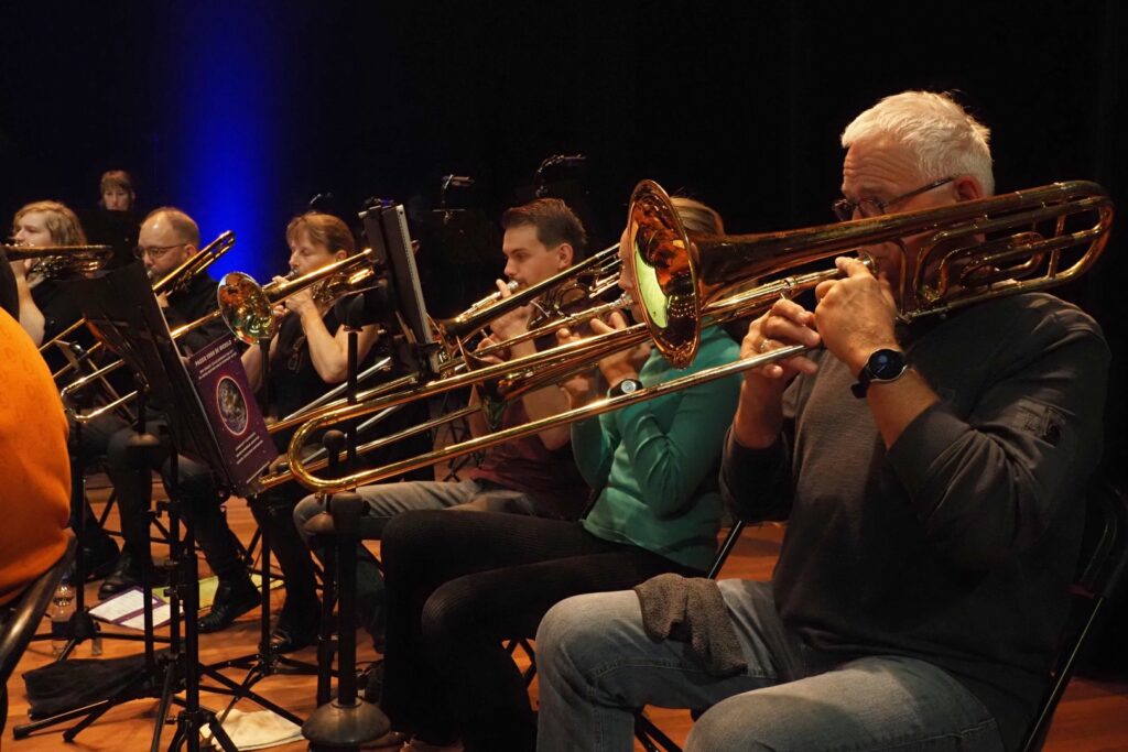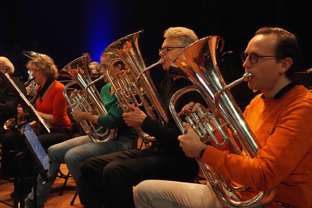 Op zondagochtend 9 november vroeg begon de bedrijvigheid al in de Deventer Schouwburg. Technici van het theater en enthousiaste vrijwilligers van de deelnemende verenigingen gingen voortvarend aan de slag met de opbouw. Het podium kreeg vorm, zo’n 150 stoelen werden geplaatst, en niet minder dan 70 instrumenten en bijbehorende lessenaars vonden hun plek. De zaal vulde zich langzaam met muziek, teamwork en een vleugje gezonde spanning voor wat komen ging.