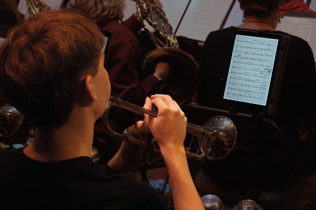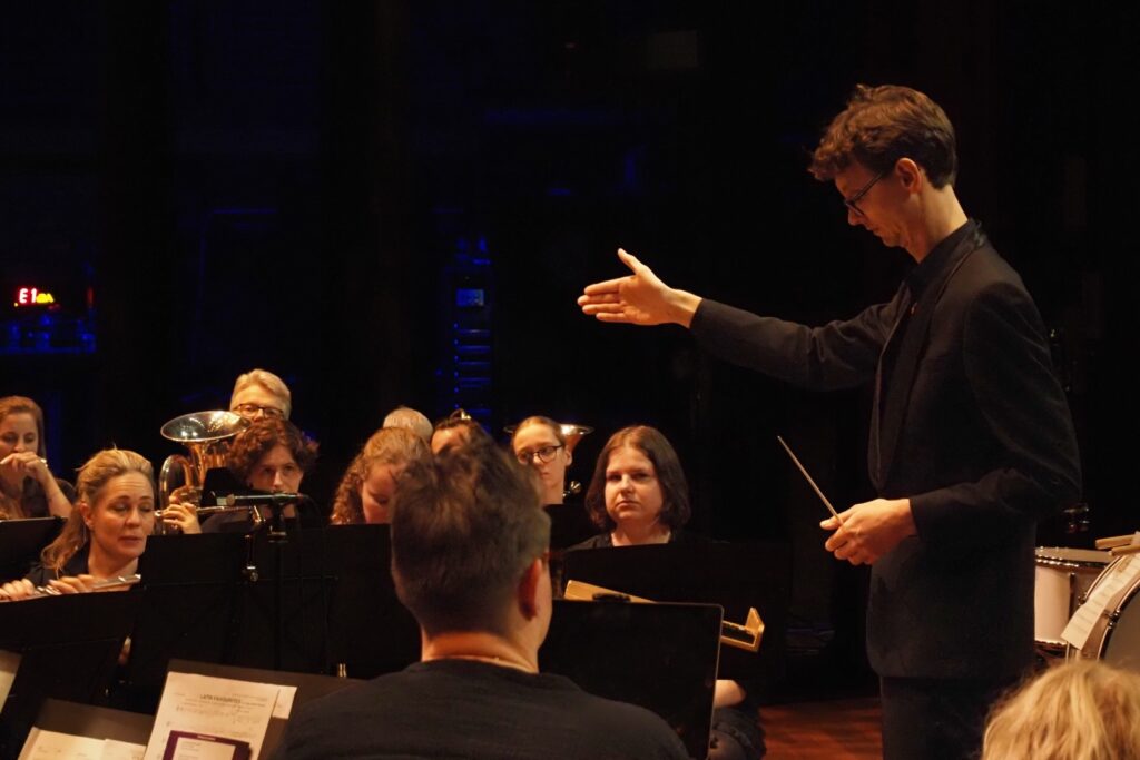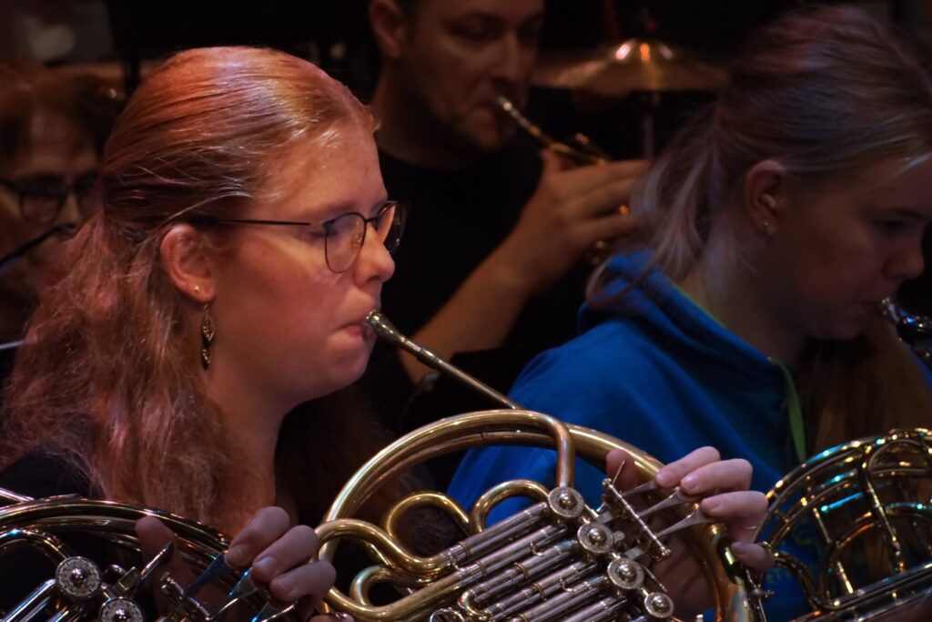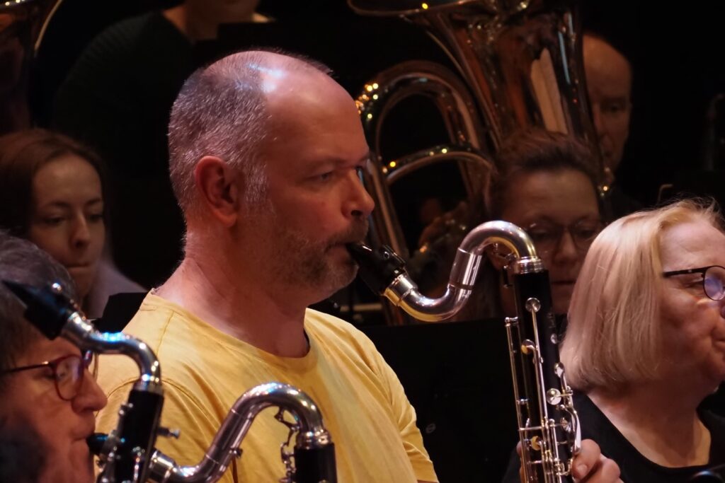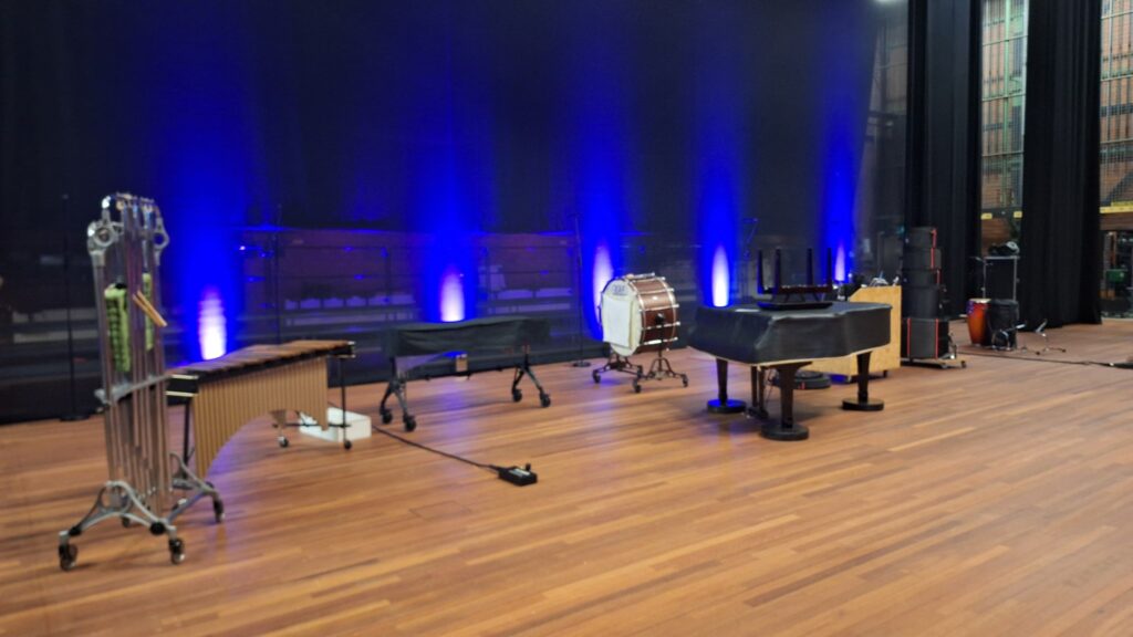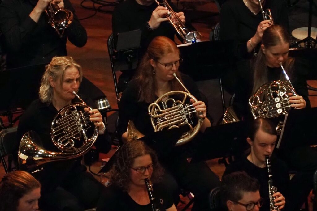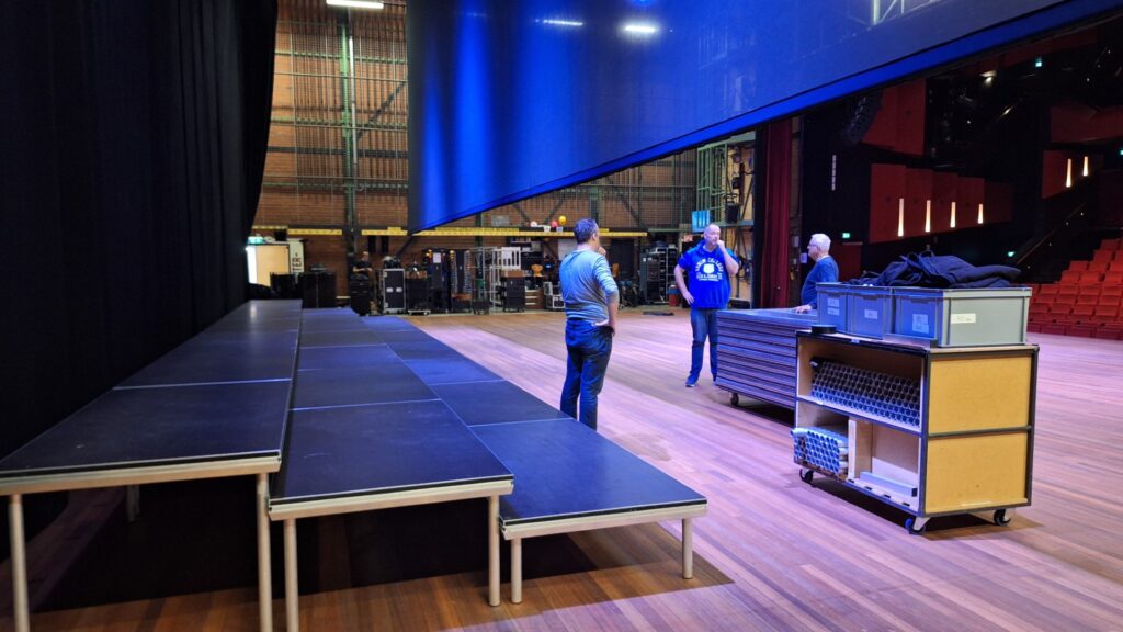 Op zondagochtend 9 november vroeg begon de bedrijvigheid al in de Deventer Schouwburg. Technici van het theater en enthousiaste vrijwilligers van de deelnemende verenigingen gingen voortvarend aan de slag met de opbouw. Het podium kreeg vorm, zo’n 150 stoelen werden geplaatst, en niet minder dan 70 instrumenten en bijbehorende lessenaars vonden hun plek. De zaal vulde zich langzaam met muziek, teamwork en een vleugje gezonde spanning voor wat komen ging.