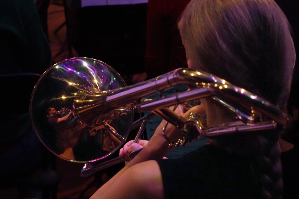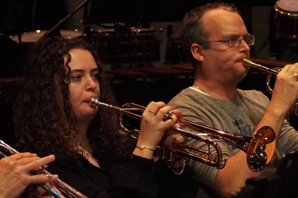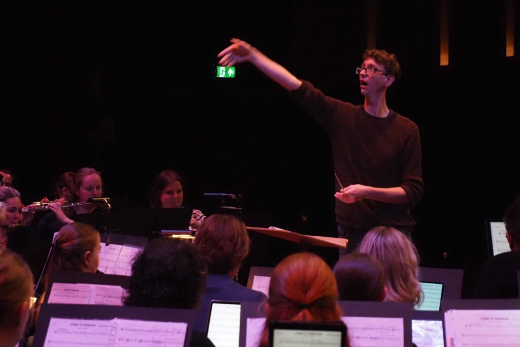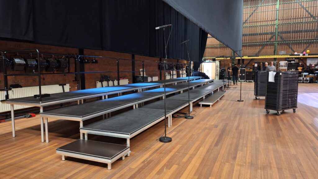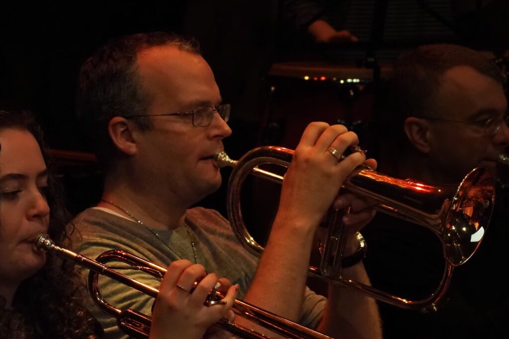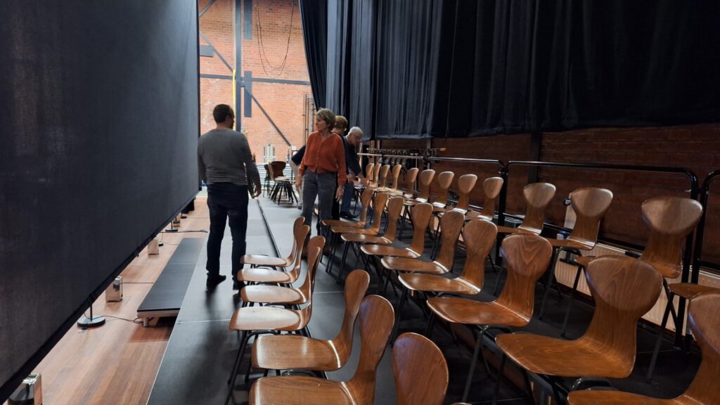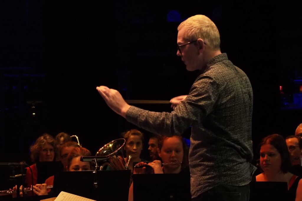 Op zondagochtend 9 november vroeg begon de bedrijvigheid al in de Deventer Schouwburg. Technici van het theater en enthousiaste vrijwilligers van de deelnemende verenigingen gingen voortvarend aan de slag met de opbouw. Het podium kreeg vorm, zo’n 150 stoelen werden geplaatst, en niet minder dan 70 instrumenten en bijbehorende lessenaars vonden hun plek. De zaal vulde zich langzaam met muziek, teamwork en een vleugje gezonde spanning voor wat komen ging.
