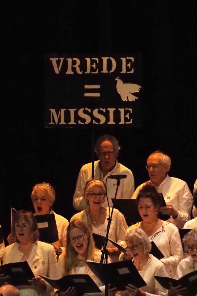Een bijzonder moment was de uitvoering van Vrede is een missie, een stuk dat in 2020 speciaal voor Passie voor de Wereld werd geschreven. Door de coronapandemie liet de uitvoering vijf jaar op zich wachten, maar de wereldpremière maakte dat meer dan goed. Componist Egbert van Groningen en tekstschrijver Robin Bleeker waren aanwezig en werden na afloop met bloemen in het zonnetje gezet.