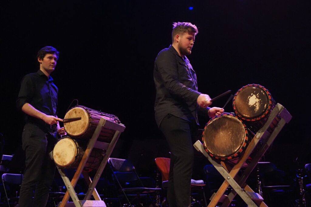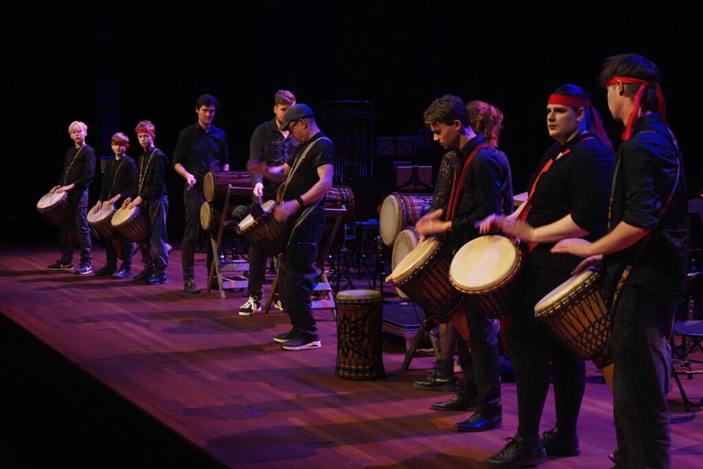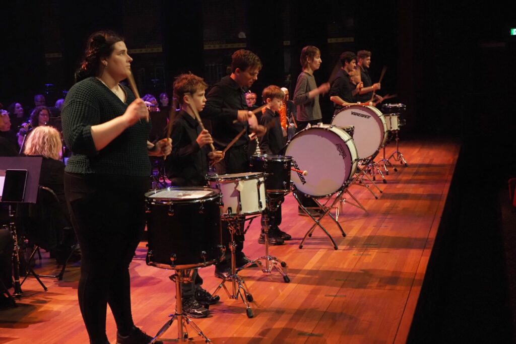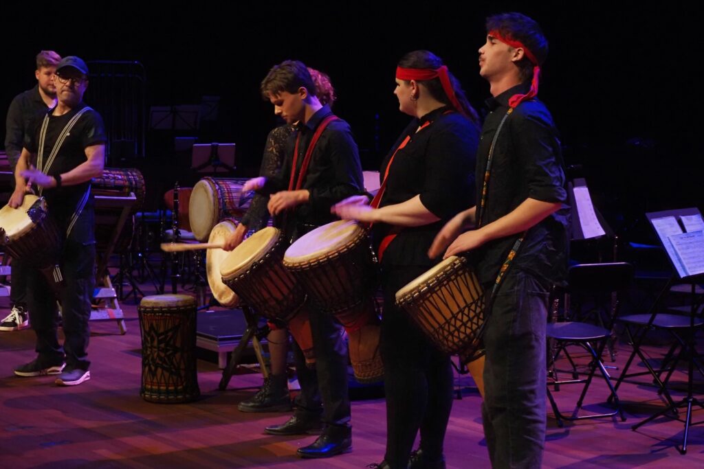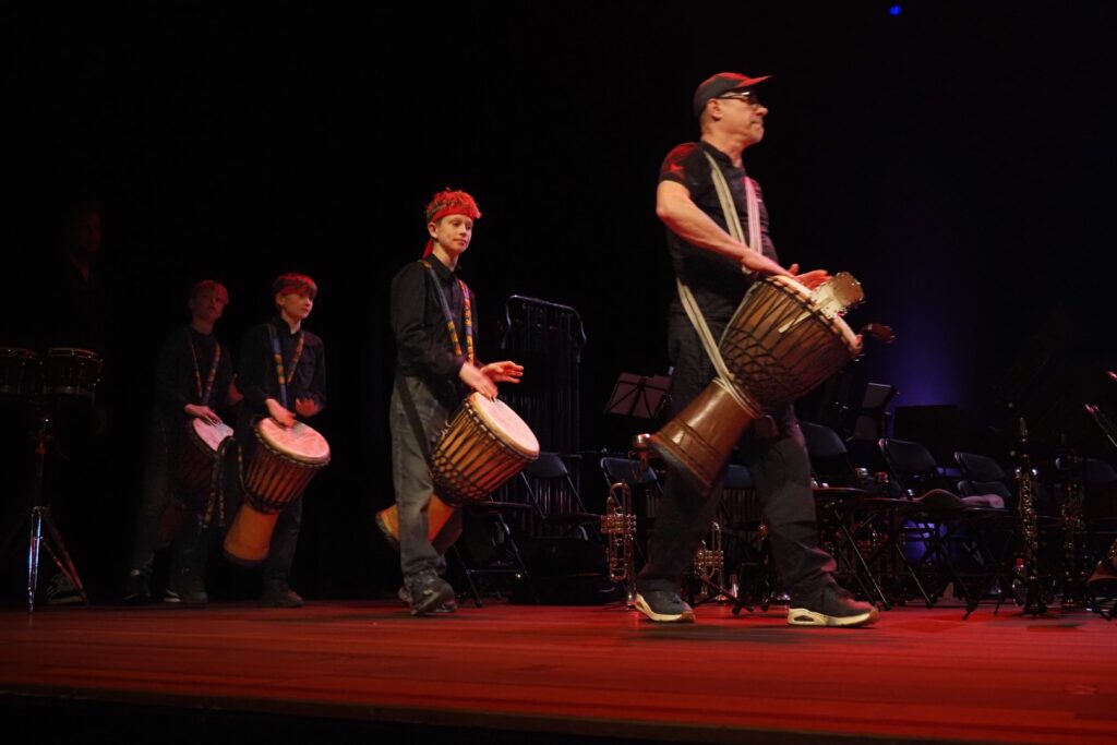 Tijdens het programma wisselden koor en orkest elkaar op mooie wijze af. Soms traden ze samen op, dan weer afzonderlijk, wat zorgde voor een afwisselend en dynamisch geheel. De slagwerkgroep van Sempre Crescendo, onder leiding van Gerrit Reijnders, liet zich horen met het indrukwekkende stuk Kyonese. Vervolgens bracht de groep, samen met Martin Bernhard (Fola Djembe), een spetterend djembé-spektakel met Didadi – een waar ritmisch hoogtepunt!