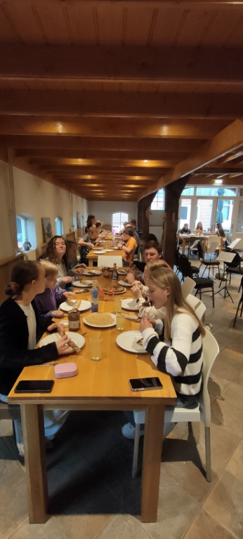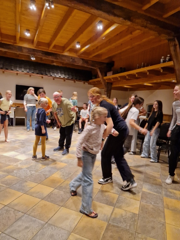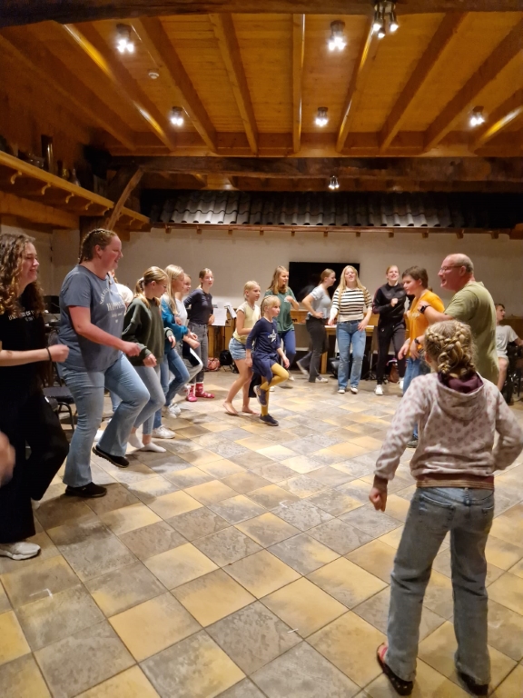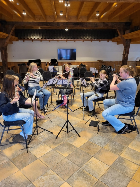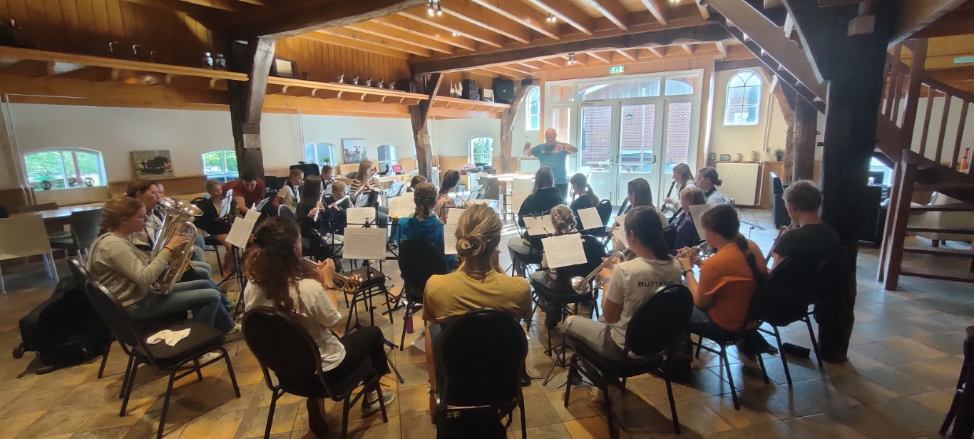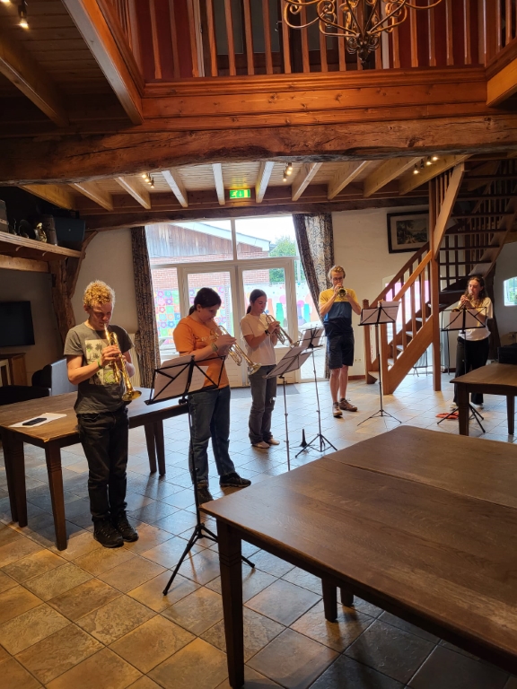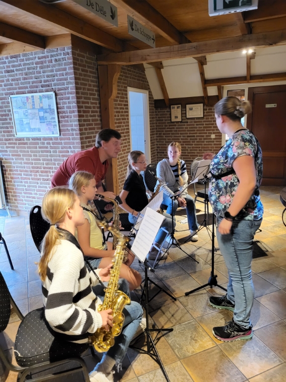 Op zaterdag zijn we na het, voor sommigen wat vroege, ontbijt weer begonnen met repeteren. Deze ochtend hadden we geen dirigent dus zijn alle secties apart aan de slag gegaan. Toen we na het zwemmen en traditiegetrouw pannenkoeken eten weer met ons allen bij elkaar zaten, klonken de stukken ineens veel beter! In de avond volgde weer een gezellige karaokeavond waar zowel jong als oud fanatiek meedeed!