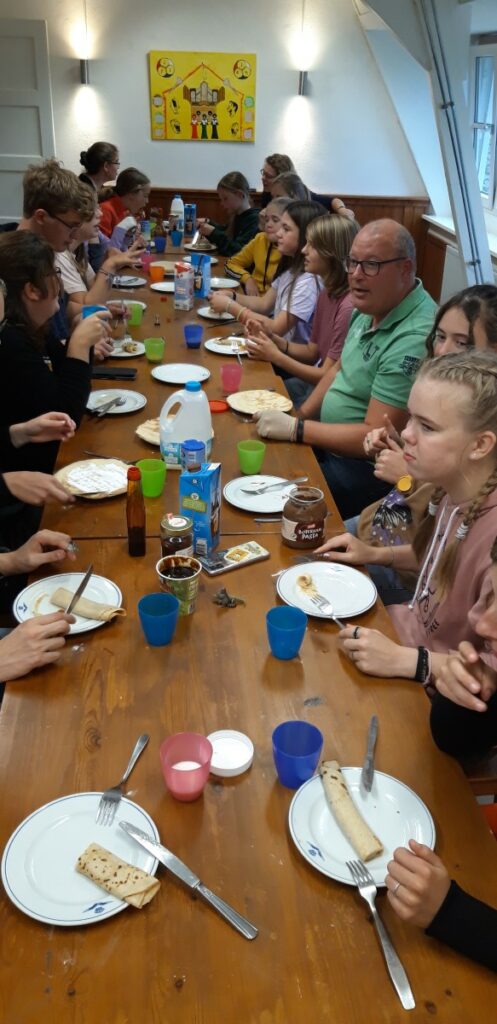 Naast het muziek maken zijn er twee spellen gespeeld; een heus ballontraptoernooi met rood als grote winnaar en op zaterdag zijn er verschillende groepjes op pad geweest om een heuse fotospeurtocht te lopen door Colmschate. Hierbij konden er door middel van opdrachten letters verdiend worden en met die letters kon het woord staccato gevormd worden, maar wie weet eigenlijk wat dat betekend? In de avond hebben we lekkere pannenkoeken gegeten!
