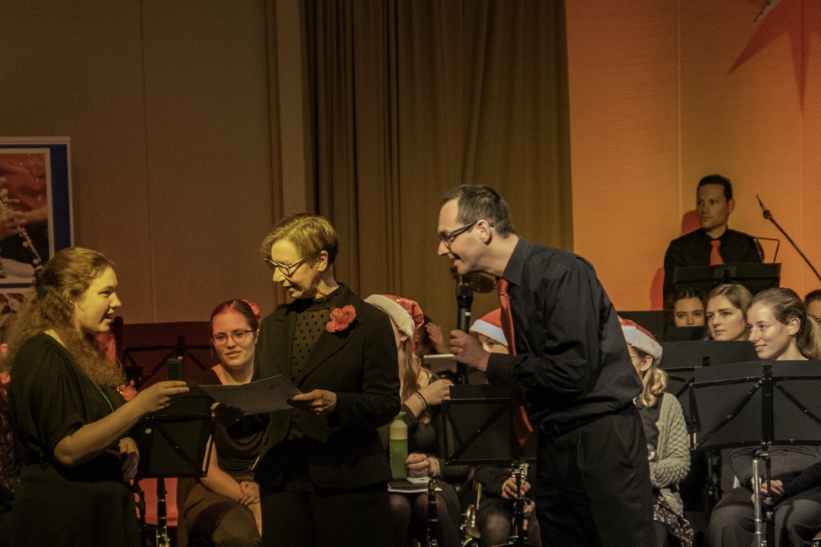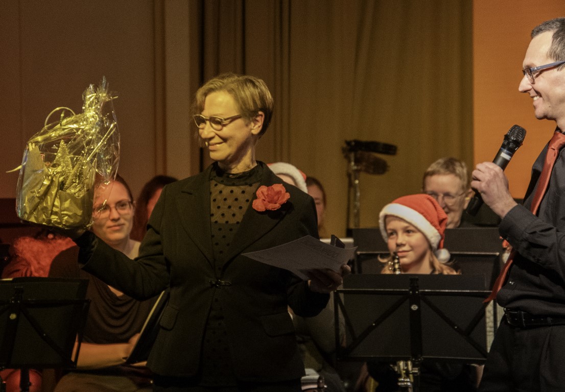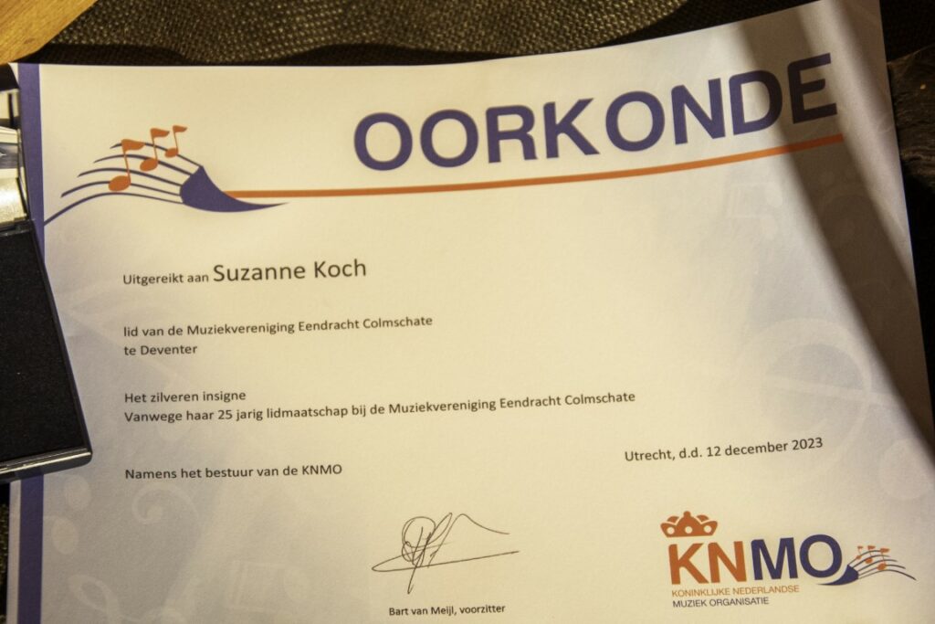Er was nog een feestelijkheid op deze avond. Want onze fluittiste Susanne Koch is dit jaar 25 jaar lid van Eendracht en werd op deze avond ook in het zonnetje gezet.