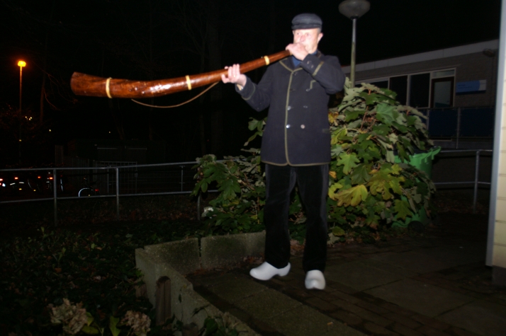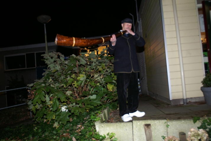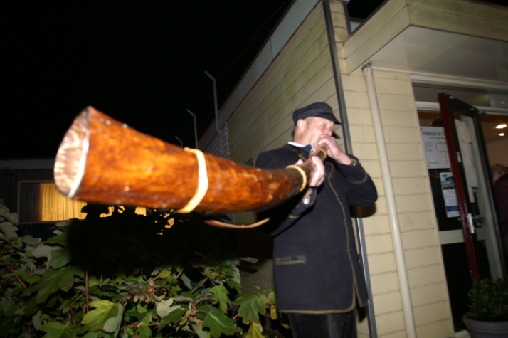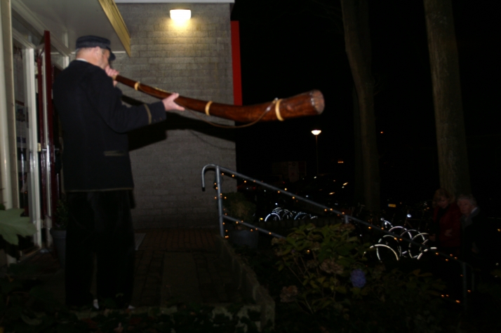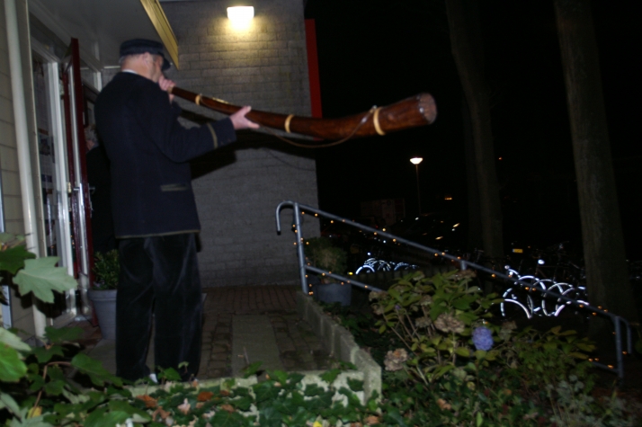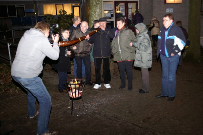 Buiten brandden vuurkorven en werd er op een midwinterhoorn geblazen. De wind zorgde ervoor dat de vlammen continue werden aangewakkerd en dat het geluid van de midwinterhoorn in de omgeving goed hoorbaar was. Binnen was het warm en druk.