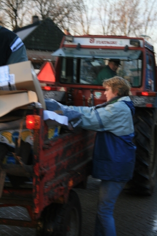 We gaan het oud papier op een andere manier ophalen. Gebeurde het voorheen nog met tractoren, vrachtwagens en auto’s met aanhangers, gaan we het vanaf 2008 doen met 2 vuilniswagens. Dus helaas komt er dan zo een einde aan een jarenlange traditie in Colmschate. Maar we blijven natuurlijk wel oud papier ophalen. Dus dit beeld van onderstaande foto’s is vanaf nu dus niet meer te zien alleen op deze foto’s dan. Inmiddels heeft het bestuur alle chauffeurs die dit belangeloos altijd deden voor de vereniging bedankt tijdens een gezellig bijeenkomst onder het genot van een kopje koffie. Nogmaals alle vrijwilligers bedankt en blijft u natuurlijk wel het oud papier langs de wegzetten, want we blijven het ophalen.