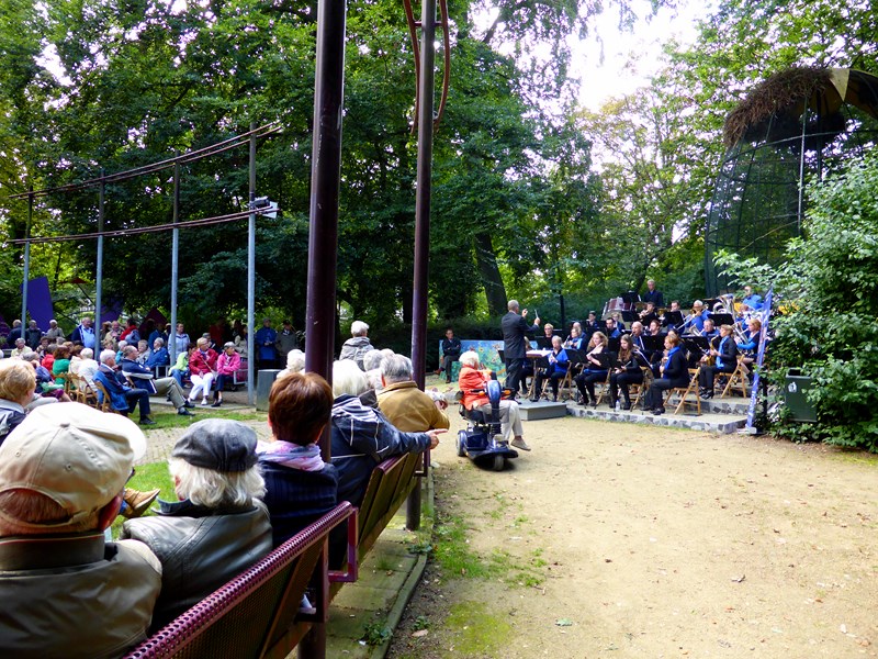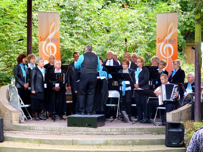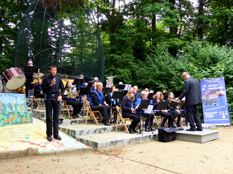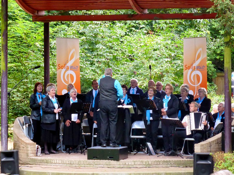 Op zondagmiddag 15 september was er op het Vogeleiland in Deventer een muzikale ontmoeting tussen het harmonieorkest muziekvereniging Eendracht en koor Solis Mio. Het koor nam plaats in de muziekkoepel en het orkest nam plaats voor het Ei. Dit zorgde dat het voor het publiek ook een actieve middag, zo om de 3 a 4 nummers (15 minuten) kon het publiek draaien naar of het optredende koor of orkest. De presentatie was in handen van Rik (tevens trompettist bij Eendracht) die hiermee zijn debuut maakte. We zijn het er allemaal mee eens, dit moet die vaker gaan doen.